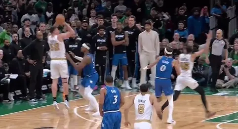虎扑04月13日讯 今日NBA常规赛,凯尔特人对阵魔术。比赛第四节,加尔扎接球后直接三分命中,凯尔特人战胜魔术。来源:虎扑 虎扑04月13日讯 今日NBA常规赛,凯尔特人对阵魔术。比赛第四节,加尔扎接球后直接三分命中,凯尔特人战胜魔术。来源:虎扑